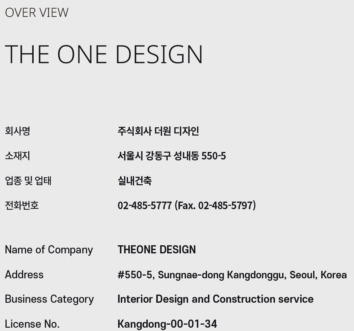주소 : 서울시 강동구 성내동 550-5 | 업종 및 업태 : 실내건축 | TEL : 02-485-5777 | FAX : 02-485-5797